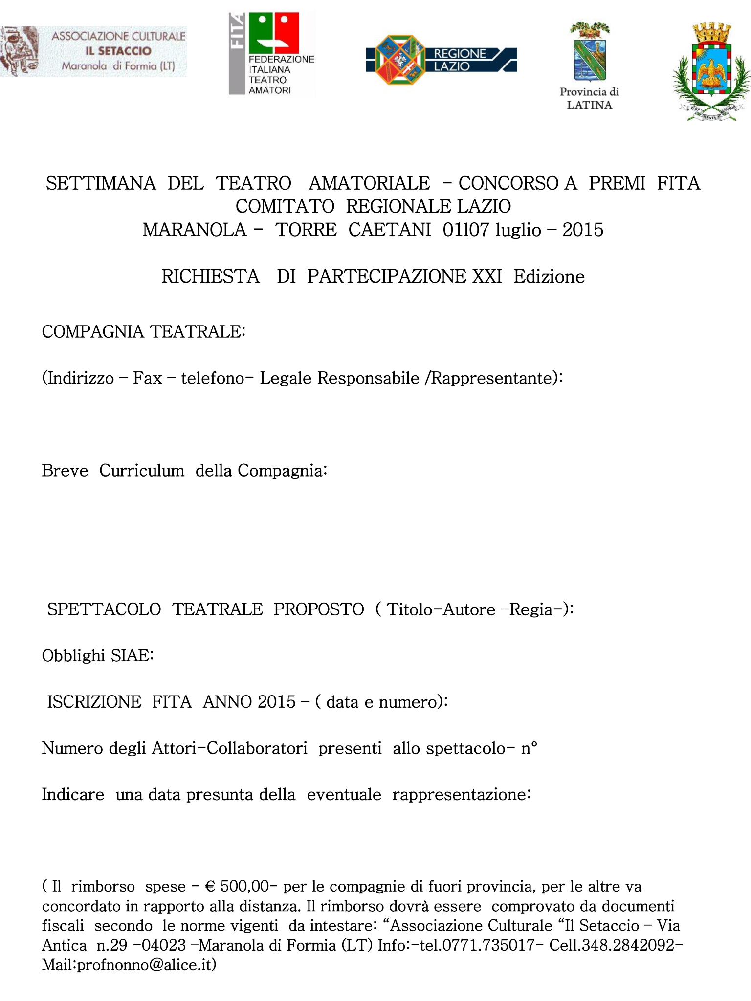 Come nelle precedenti edizioni il concorso è aperto a tutte le Compagnie Teatrali Amatoriali iscritte alla FITA (Federazione Italiana Teatro Amatori) Lazio per il 2015.