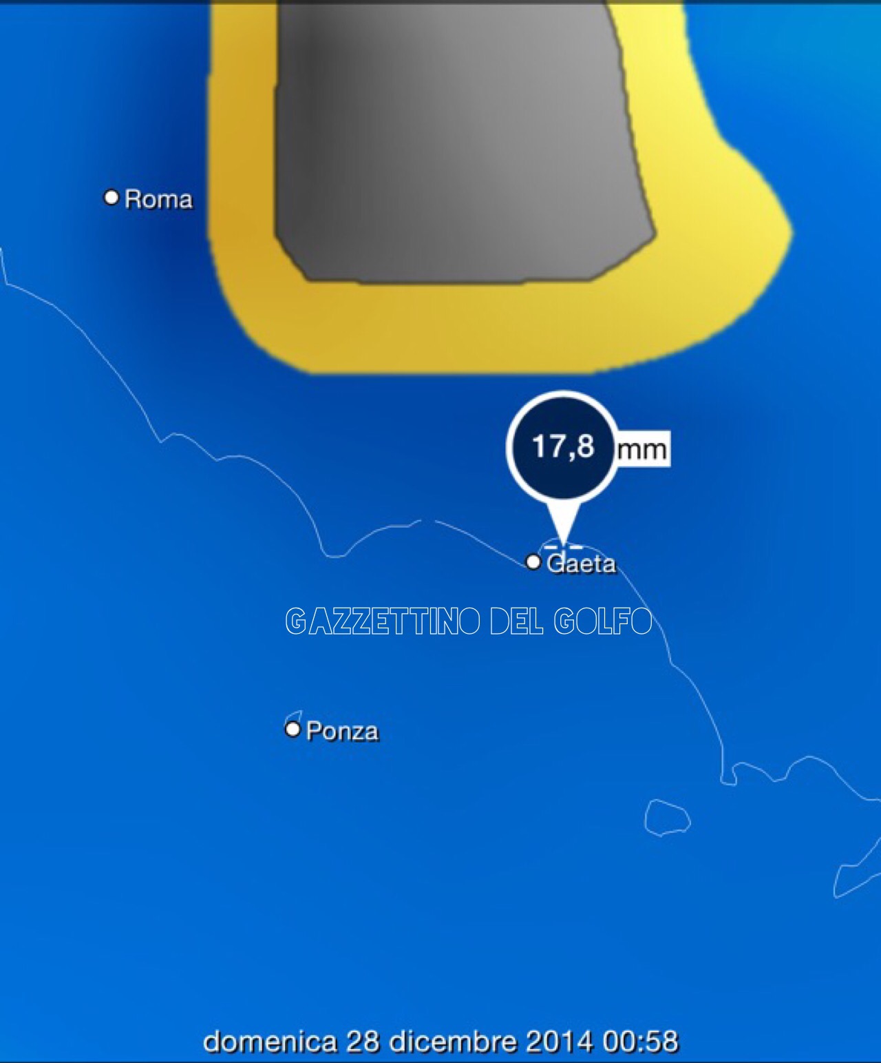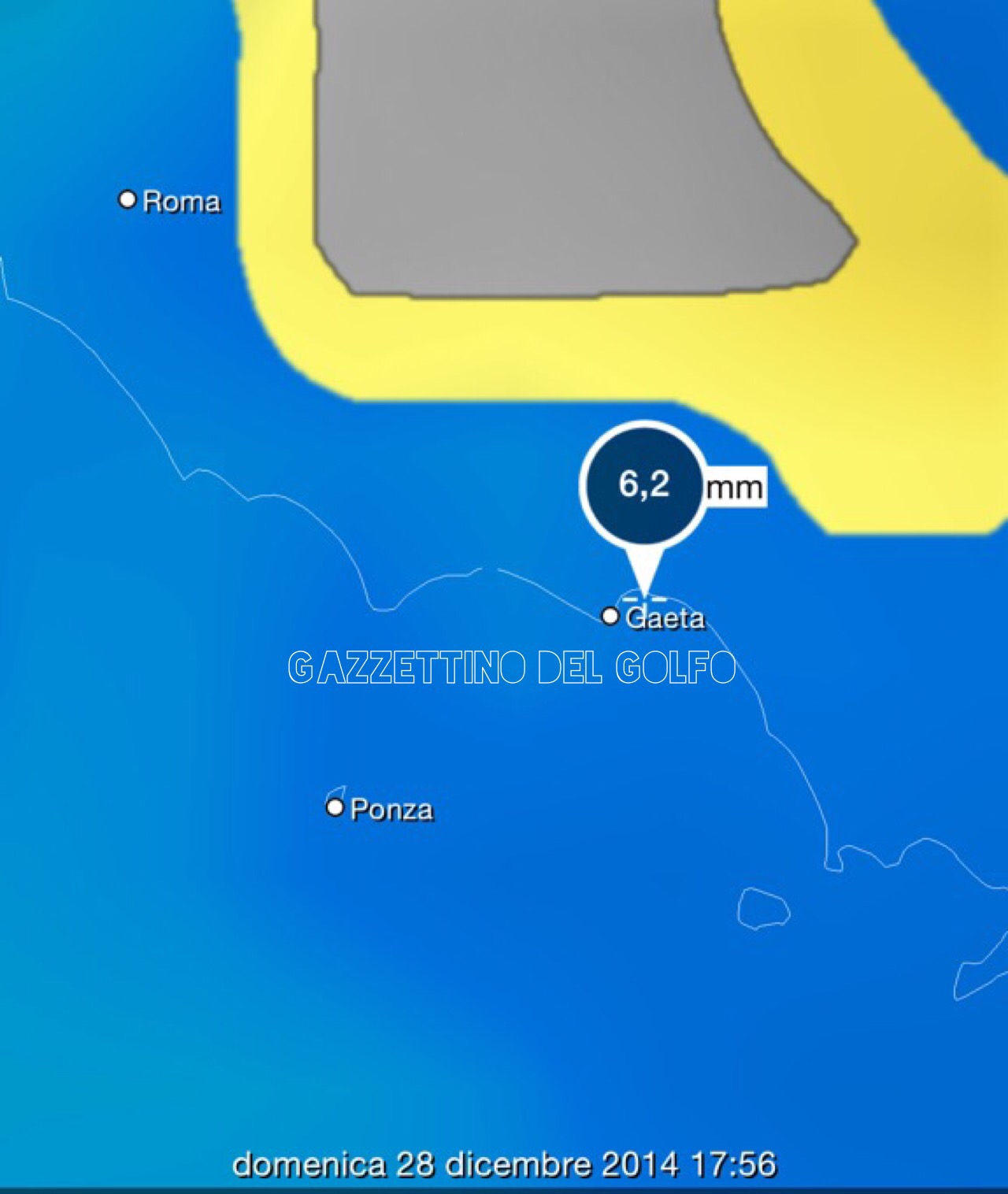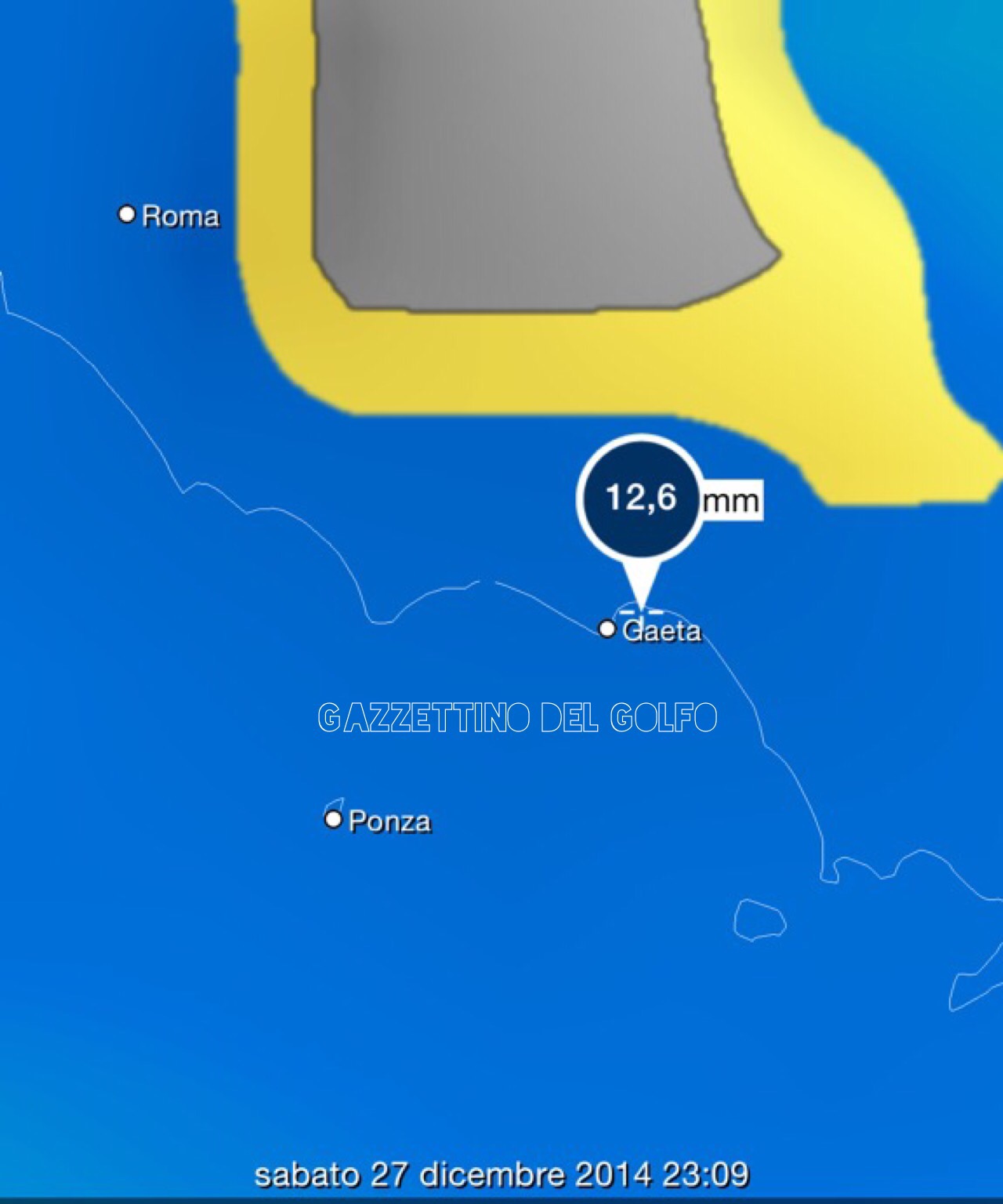 È prevista per il weekend del 27 e 28 dicembre, l’ultima tempesta di questo 2014 oramai agli sgoccioli; intense piogge ed un brusco calo termico, caratterizzeranno le prossime 48/72 ore nel Golfo di Gaeta ed Isole Pontine. Da tenere sotto stretta osservazione il Torrente Pontone, straripato solo poche settimane fa.