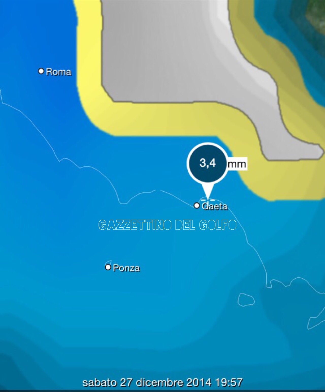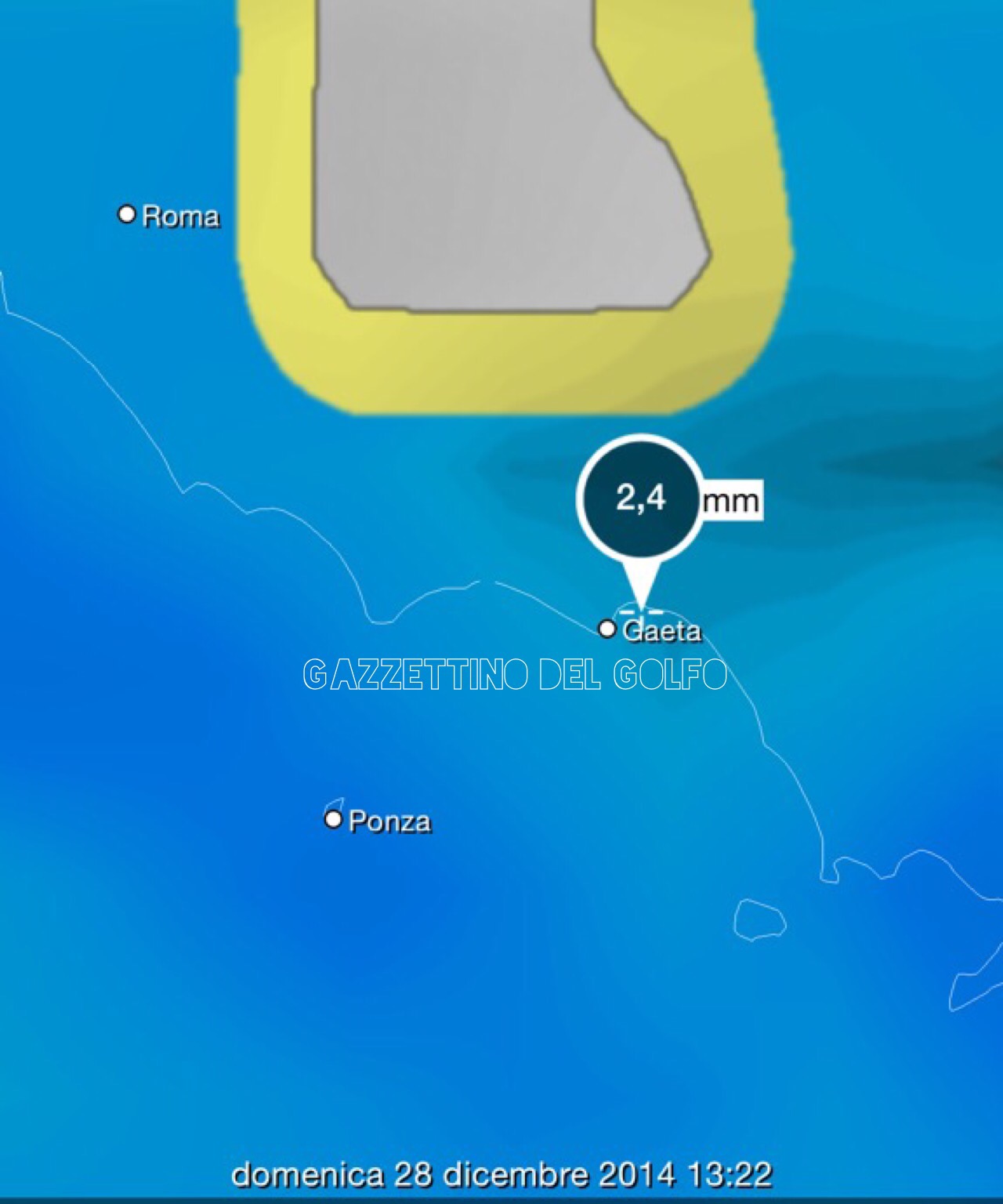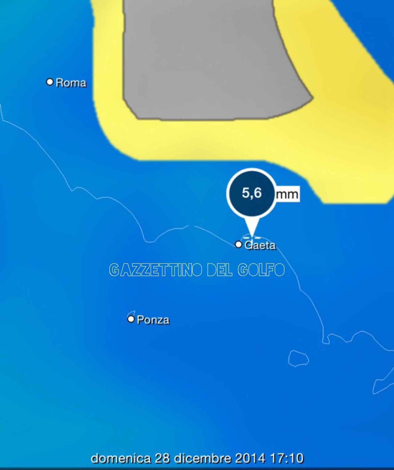 È prevista per il weekend del 27 e 28 dicembre, l’ultima tempesta di questo 2014 oramai agli sgoccioli; intense piogge ed un brusco calo termico, caratterizzeranno le prossime 48/72 ore nel Golfo di Gaeta ed Isole Pontine. Da tenere sotto stretta osservazione il Torrente Pontone, straripato solo poche settimane fa.