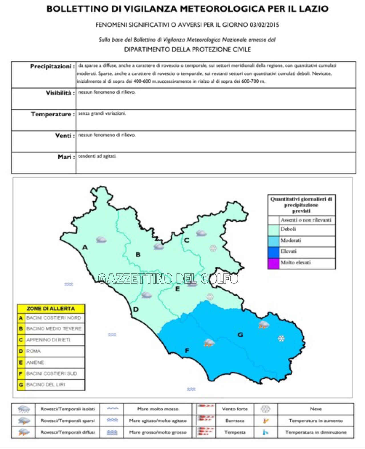 Particolare attenzione per le giornate di martedì, mercoledì e giovedì, in cui sono previsti i rovesci più intensi e mare molto mosso, generale miglioramento nel fine settimana; possibili disagi nei collegamenti con Ponza e Ventotene. Per la giornata odierna sono previsti per oggi cieli molto nuvolosi con possibilità di nevischio sui rilievi nelle prime ore del mattino, schiarite in serata. La temperatura massima registrata sarà di 11°C, mentre la minima di 3°C. I venti saranno al mattino deboli da Ovest-Sudovest, al pomeriggio deboli o con direzione Nord, mare molto mosso.