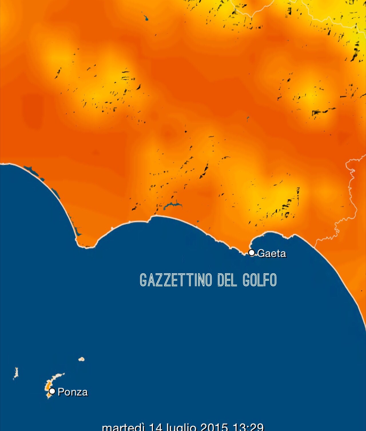 Nel Golfo di Gaeta sono attesi nelle prossime 48 ore cieli in prevalenza sereni, la temperatura massima registrata sarà di 33°C, mentre la minima sarà di 25°C. L’umidità oscillerà dal 40 al 50% aumentando sensibilmente la temperatura percepita; sconsigliato esporsi al sole in modo particolare nelle ore di punta, massima attenzione a bambini ed anziani.