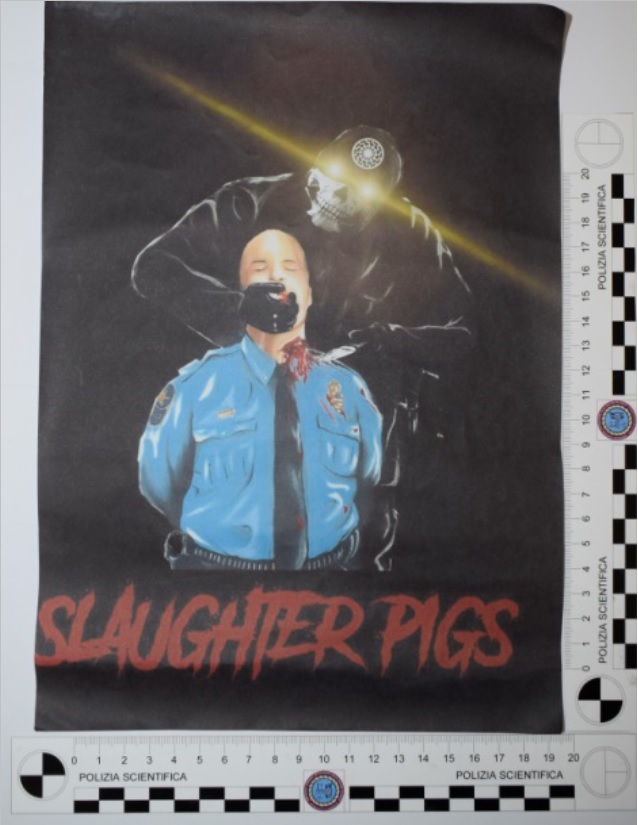 L’ordinanza è stata emessa dal G.I.P. del Tribunale di Latina dr. Giuseppe MOLFESE su richiesta del Procuratore Capo della Procura della Repubblica presso il Tribunale di Latina dr. Giuseppe DE FALCO, a seguito delle risultanze delle laboriose e articolate indagini condotte dagli uffici investigativi operanti, avviate verso la fine del mese di settembre 2021, allorquando su una vettura con i colori della Polizia di Stato parcheggiata all’esterno del Commissariato di P.S. di Terracina, era stato collocato un volantino dal contenuto minatorio, nel quale una persona incappucciata tagliava la gola ad un poliziotto in divisa sovrastato dalla scritta “Slaughter Pigs” ossia Macelliamo i Maiali.
