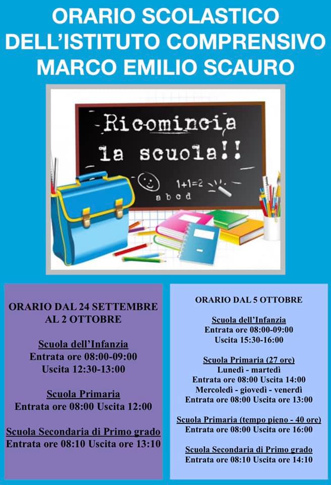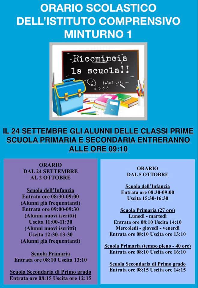 Domani inizia la scuola. Qui di seguito due volantini riassuntivi degli orari delle prime settimane dei due Istituti Comprensivi di Minturno.