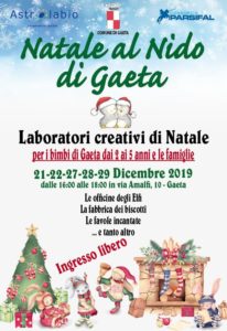 Si rinnova l’appuntamento con “Natale al nido di Gaeta”, promosso dal Comune di Gaeta in sinergia con le Coop. “Astrolabio” e “Parsifal”. Anche quest’anno, con ingresso gratuito, sono diverse le iniziative in programma. Si parte sabato 21 dicembre quando gli spazi accoglienti ed addobbati a festa della struttura in via Amalfi, apriranno nuovamente le porte ai bimbi di Gaeta dai 2 ai 5 anni accompagnati dai loro genitori e familiari.