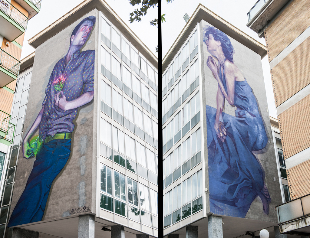 Conclusi i “lavori”, affidati ai giovani artisti internazionali Betz e Natalia Rak, entrambi di nazionalità polacca, al palazzo comunale di Caserta. Due enormi murales verticali, dell’altezza di 14 metri, sono stati realizzati sulle due facciate «cieche» dell’ex Palazzo Castropignano, sede del Comune di Caserta.
