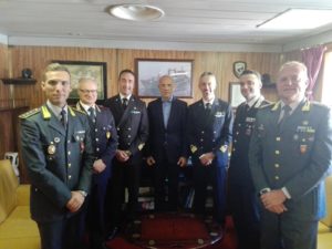 Durante la breve sosta a Gaeta, oltre alle consuete attività di carattere operativo di bordo, non è mancata una parentesi di carattere istituzionale, con la visita a bordo dell’Unità navale delle Autorità locali.