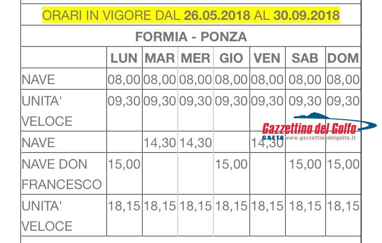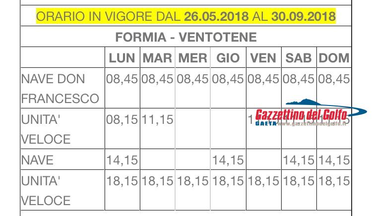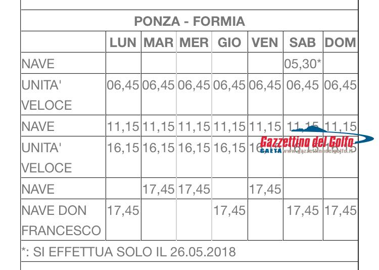 In allegato troverete le istantanee relative ai nuovi orari Laziomar per Ponza e Ventotene in vigore dal 26 maggio 2018 al successivo 30 settembre, con partenza ed arrivo, sia da Formia che da Terracina.