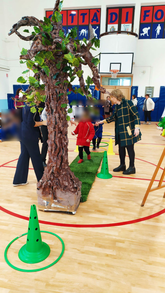Al centro della “scena” un albero verso il quale i bambini si dirigevano per appendere tra le foglie tantissimi pensieri gentili da loro composti e realizzati.