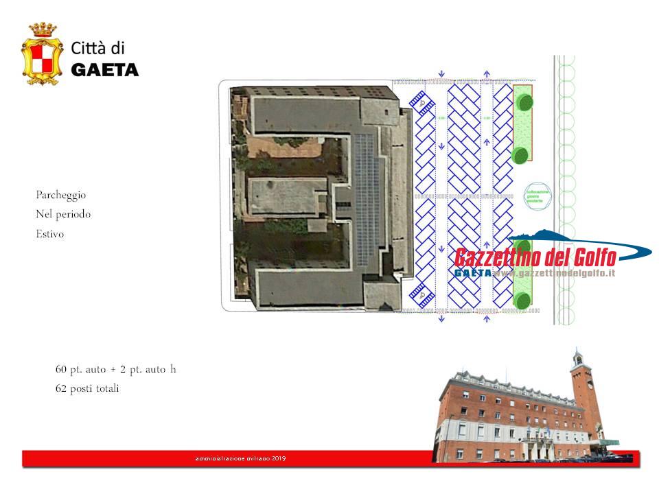 Una vasta area, che al termine degli interventi iniziati in questi giorni, a breve cambierà in meglio la fruizione dei luoghi aumentando i servizi a beneficio del cittadino. A scendere nei dettagli il Sindaco di Gaeta Cosmo Mitrano che precisa “Attraverso questo importante intervento di riqualificazione ed ottimizzazione delle aree andiamo in primis a migliorare la viabilità urbana congiungendo in entrambi i sensi di marcia, Piazza XIX Maggio a Piazza della Libertà e viceversa, recuperando inoltre in pieno centro città ulteriori 62 posti auto, due dei quali destinati alle persone diversamente abili.