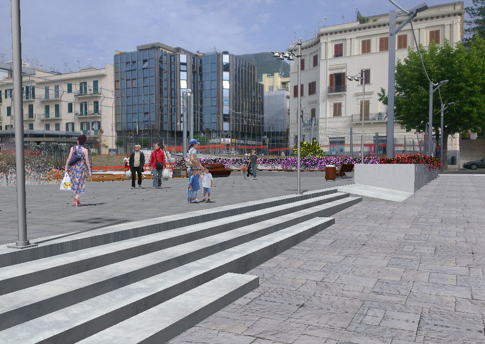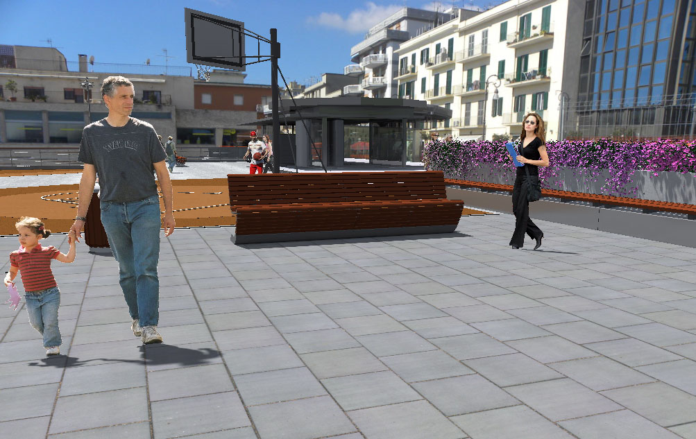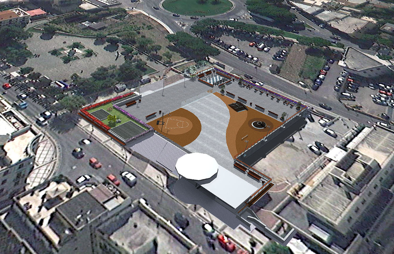 Costruita sul lastrico solare del parcheggio multipiano delle Poste, il piazzale sarà direttamente collegato a piazza Vittoria con l’eliminazione dei vasconi previsti dal progetto iniziale. Una soluzione fortemente voluta dall’amministrazione comunale per dare continuità spaziale alle due piazze.