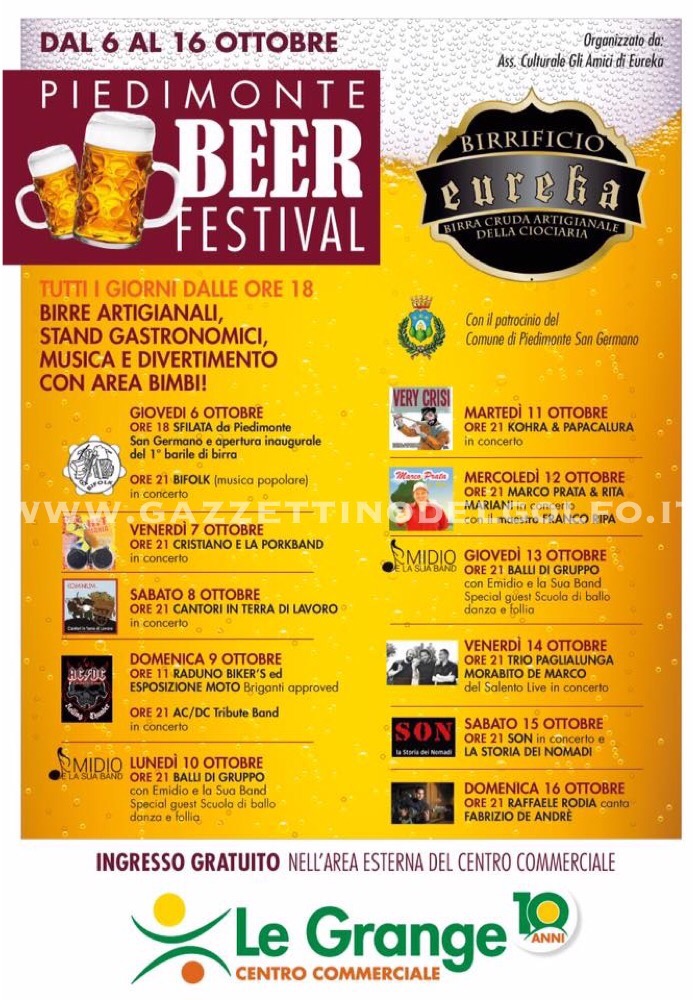 Appuntamento allora il 6 ottobre dalle ore 18.00 con inaugurazione della manifestazione con sfilata e apertura del primo barile di birra. E poi fino al 16 ottobre tutti i giorni!