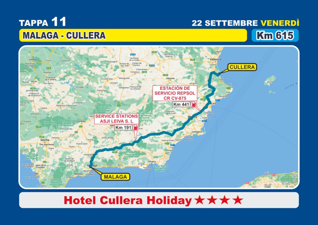 Da qui la meta sarà Malaga, distante 147 km, dove i mototouristi passeranno la notte nell’Hotel Plaza del Catillo (stesso hotel dell’andata). Dopo aver visitato Malaga, le successive tappe spagnole saranno Cullera, un piccolo paese vicino Valencia, per un viaggio di 615 km, dove il gruppo alloggerà nel Cullera Holiday Hotel e infine Barcellona, a 408 km da Valencia.