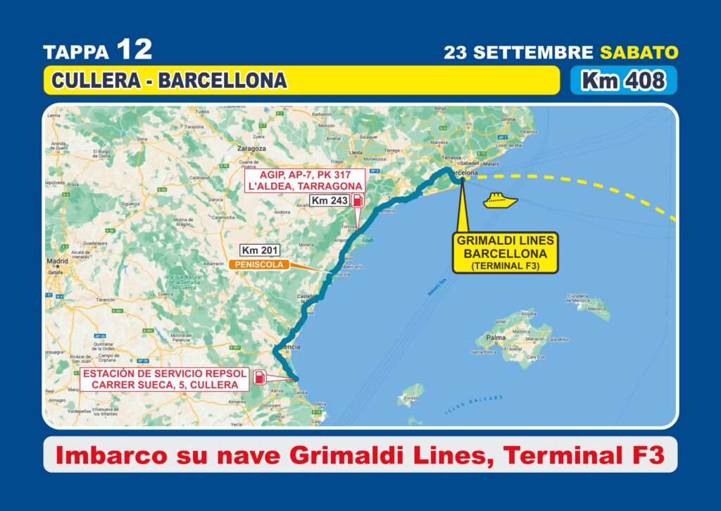 Sabato 23 settembre, dopo aver passato la giornata a Barcellona, sarà tempo di fare ritorno definitivamente in Italia. In serata i partecipanti del Roby Tour 2023, si imbarcheranno dalla Spagna e dopo un viaggio di una notte, giungeranno al porto di Civitavecchia, da dove rimonteranno in sella alle moto, direzione Gaeta, a conclusione di un’esperienza sicuramente indimenticabile.