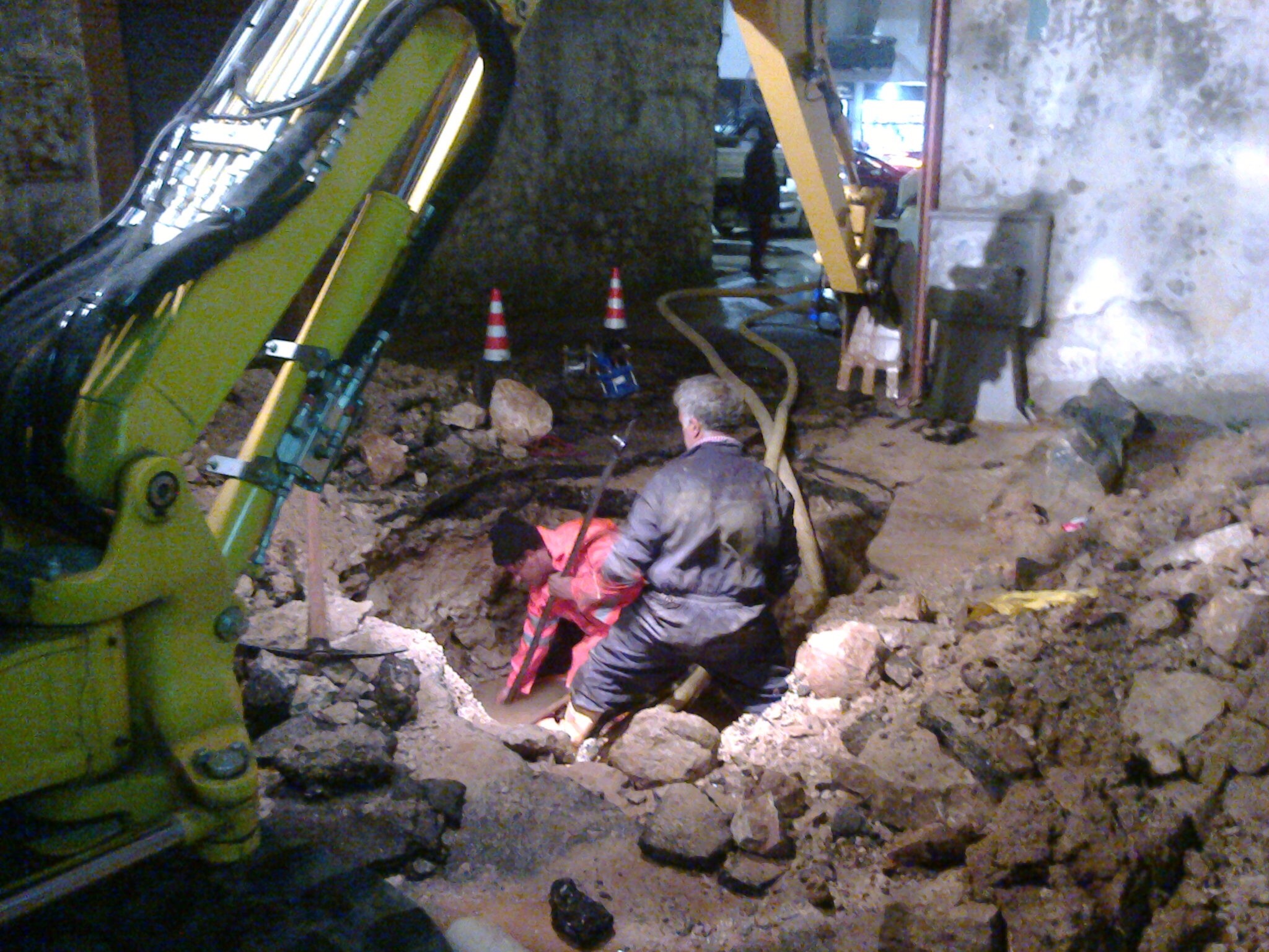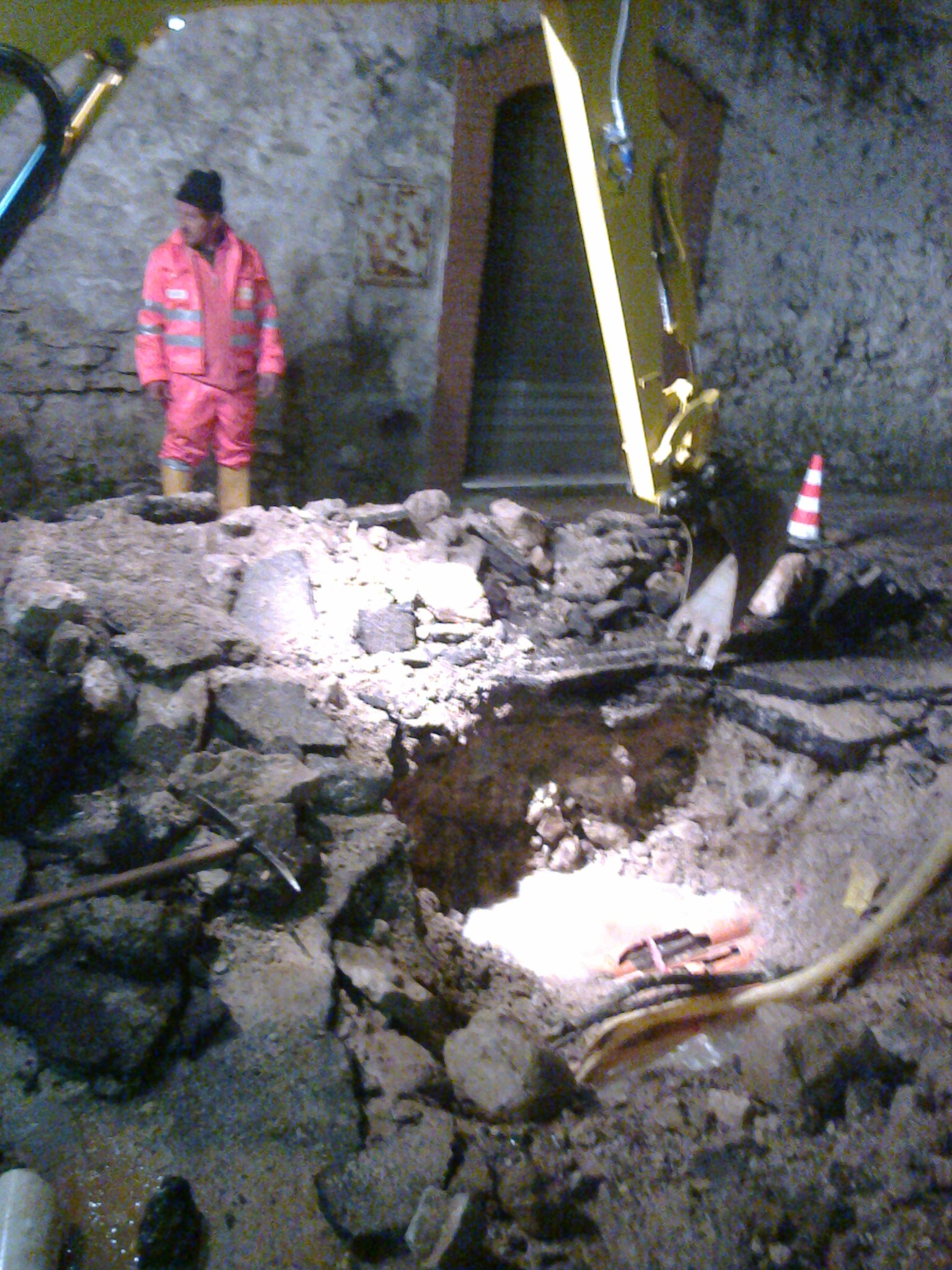 Erano infatti le tre e mezza del pomeriggio quando, nel tratto terminale di via Santa Maria della Misericordia, a pochi metri dallo “stop” che fa immettere sulla statale Appia il traffico proveniente dal centro storico di Sant’Angelo e dal popoloso rione periferico di Campoli, è iniziata a sgorgare una polla di acqua dalla portata sistematicamente crescente, con le inevitabili critiche conseguenze per i locali che si affacciano sulla strada e sul manto d’asfalto della consolare Appia. L’improvvisa emergenza, affrontata con encomiabile impegno dagli agenti della Polizia Locale, dai militi della Benemerita della stazione di Itri e dai volontari della Protezione Civile, Emergenza Radio Itri, del presidente Antonio Maggiacomo, ha portato alla chiusura totale dell’unica strada che favorisce il deflusso da Itri alta (anche per il biasimevole ritardo con cui si è sempre rimandata la soluzione dell’ipotesi di una bretella alternativa all’Appia che passi per la zona Campoli dove basterebbe espropriare un tratto di settanta metri lineari per realizzare una validissima alternativa a una paralisi ormai quotidiana che si registra sul chilometro e mezzo dell’unica arteria che attraversa Itri). Sul posto è stata attivata una squadra di operai della ditta Giuseppe Carcone di Minturno che lavorando in condizioni anche rischiose (la benna dell’escavatore e gli operatori erano nella pozza d’acqua dove coabitavano cavi dell’Enel, tubature del gas, rete fognante e altro).