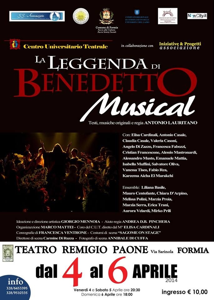 Oltre alle matineè scolastiche, due spettacoli serali alle 20:45 venerdì 4 e sabato 5 aprile con La Leggenda di Benedetto, un Musical Drama in due atti sulla vita e l’opera di San Benedetto.