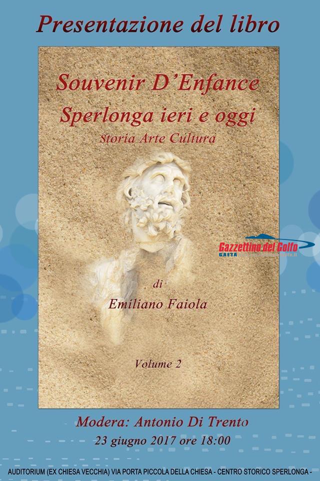 Un altro attestato d’amore per la sua natìa Sperlonga giunge da Emiliano Faiola, figlio affezionatissimo alla sua cittadina di origine, alla cui storia e ai cui momenti che ne hanno segnato il mitico afflato turistico l’ex maitre degli alberghi a 5 stelle della Ville Lumière dedica la seconda edizione della riuscitissima opera prima, “Souvenir d’enfance”, pubblicazione nella quale a parlare sono le immagini, originali e documentative, di un secolo e oltre, di vita dell’antico borgo marinaro, assurto, oggi, a perla autentica del litorale tirrenico e meta gettonatissima nel grand tour italico.