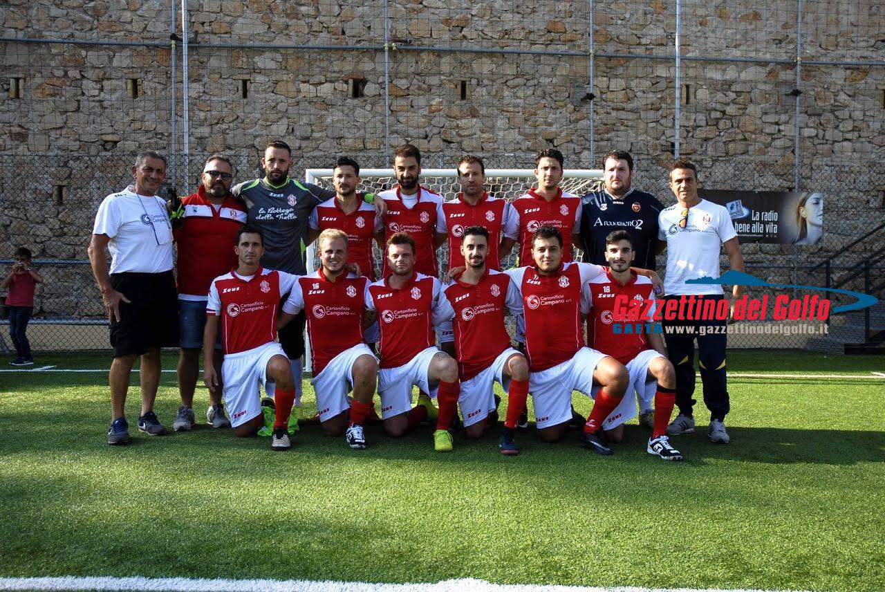 Approccio iniziale ottimo per gli ospiti che nell’arco di pochi minuti si portano sul 2 a 0 con le reti di Valenti che salta un difensore gaetano e La Marra che chiude benissimo una perfetta triangolazione.Reagisce la squadra di casa che ci prova con Bruno De Santis senza esito.A meta’ pt e’ shoow di Sorrentino che in questa fase di gara dà spettacolo al pubblico presente al campo “San Paolo” con un primo gol da cineteca rovesciata a volo e rete sulla sx del portiere ospite, secondo gol che e’ una bomba su punizione ed infine gol del vantaggio su azione di rimessa altro bel diagonale e tripletta personale per Damiano Sorrentino.Si chiude il pt con il vantaggio per 3 a 2 per i biancorossi di mister De Falco.