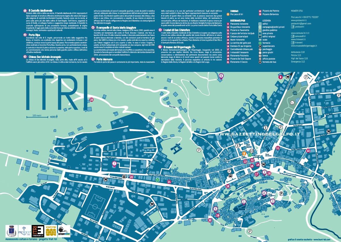 “La mappa turistica di Itri è la prima tappa del progetto Visit Itri, che ha la finalità di accompagnare il turista-visitatore nel nostro paese e nel comprensorio sud-pontino – dichiara Mattia Punzo, Delegato al Turismo del Comune di Itri. L’intento è quello di voler guidare il visitatore lungo il tratto di Via Francigena che passa anche per Itri, vista anche la proclamazione da parte del Ministro Dario Franceschini del 2016 come anno nazionale dei cammini, e di essere un utile strumento filo-conduttore in grado di instaurare sinergie tra le varie realtà culturali e turistiche presenti nel Golfo di Gaeta”.