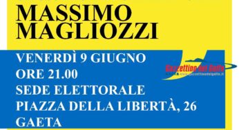 Gaeta, 8 giugno 2017: Domani 9 giugno, alle 21.00, Massimo Magliozzi, candidato a Sindaco di Gaeta, chiuderà la campagna elettorale…