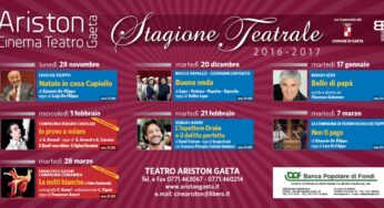 Il prossimo 28 novembresi aprirà nuovamente il sipario sulla Stagione Teatrale del TEATRO ARISTON di GAETA, che presenta il cartellone…