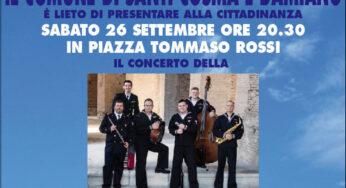 Sabato 26 Settembre alle ore 20.30 concerto in Piazza T. Rossi in onore dei festeggiamenti dei Santi Patroni Cosma e…
