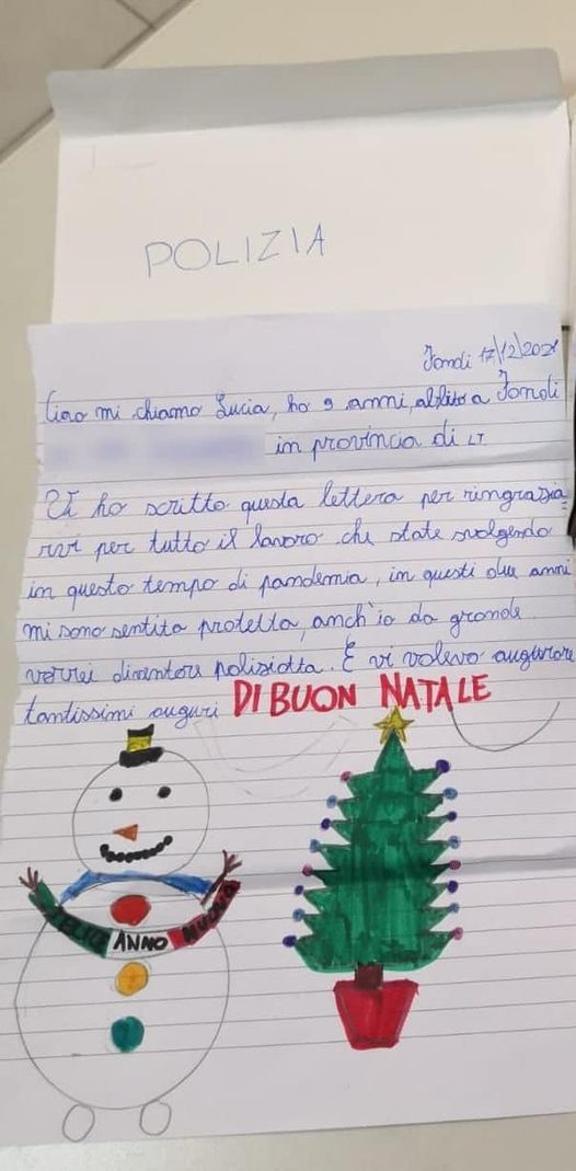 “Anch’io da grande vorrei diventare poliziotta”, gli auguri speciali di una bambina di Fondi