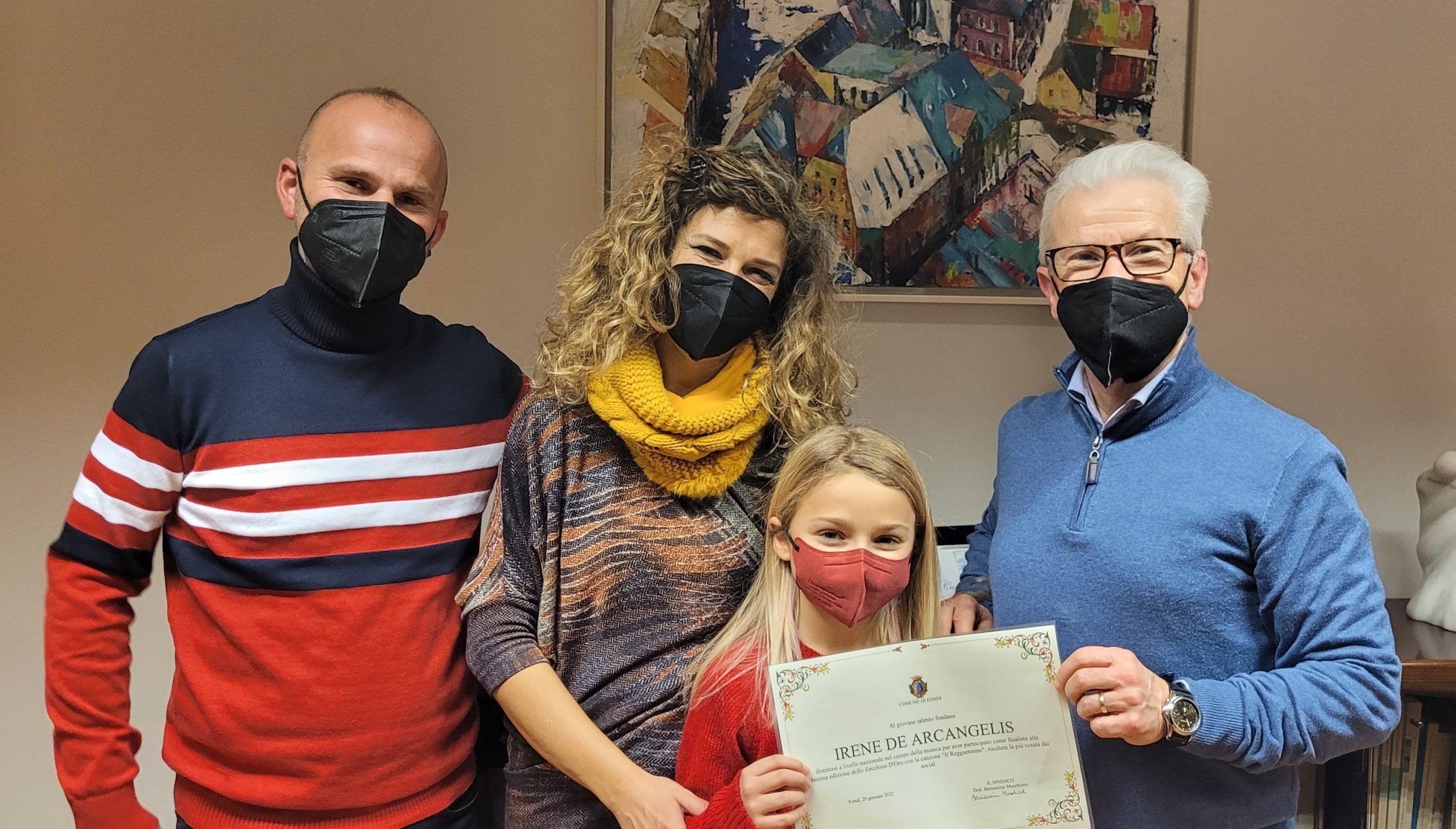 La piccola Irene De Arcangelis premiata dal sindaco con la pergamena riservata ai cittadini meritevoli