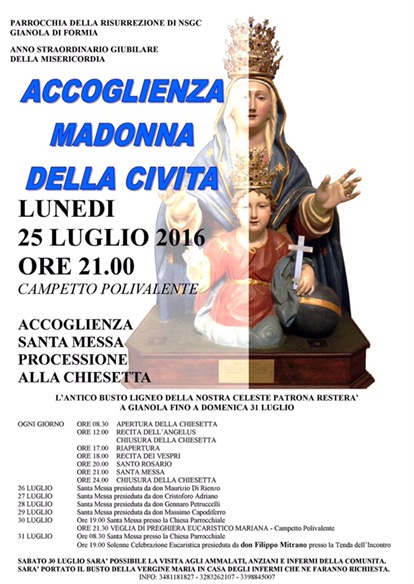 Formia, Gianola: Programma dei festeggiamenti in onore della Madonna delle Grazie