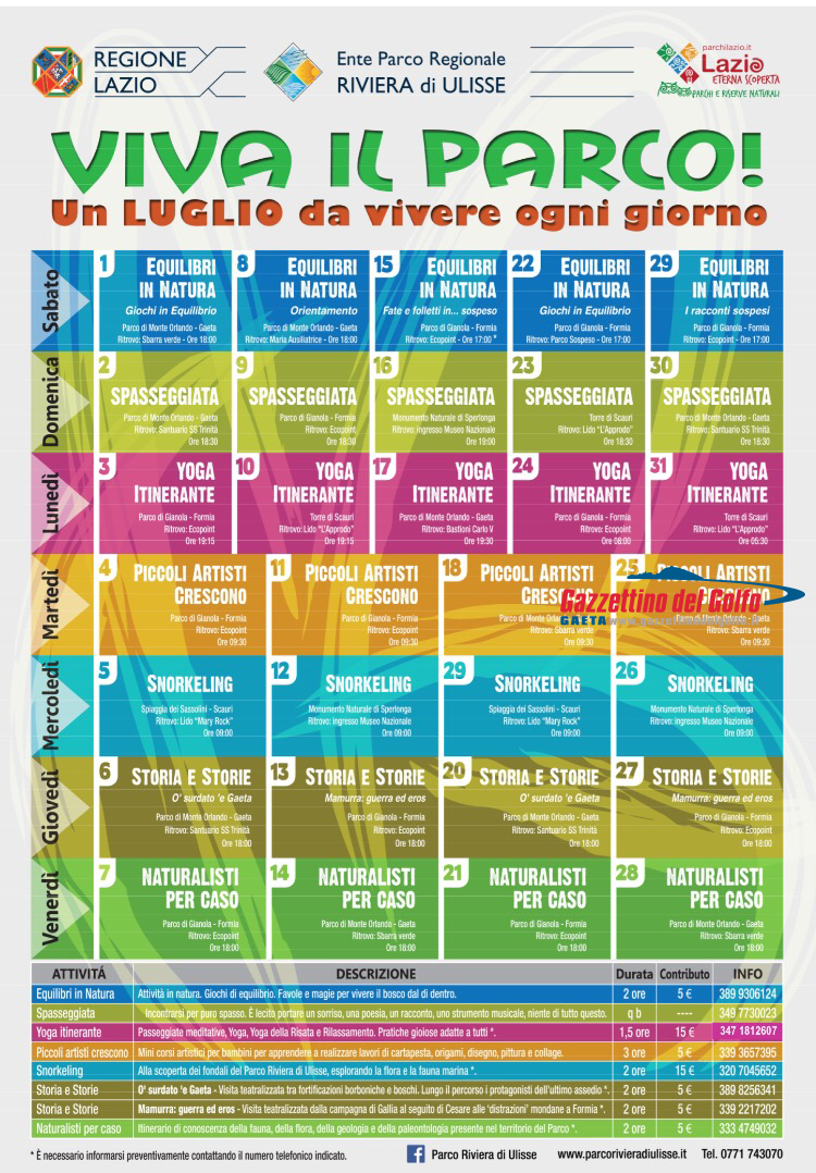 Il Parco Riviera di Ulisse, per il mese di luglio, presenta un ricco programma di attività. Ecco il programma