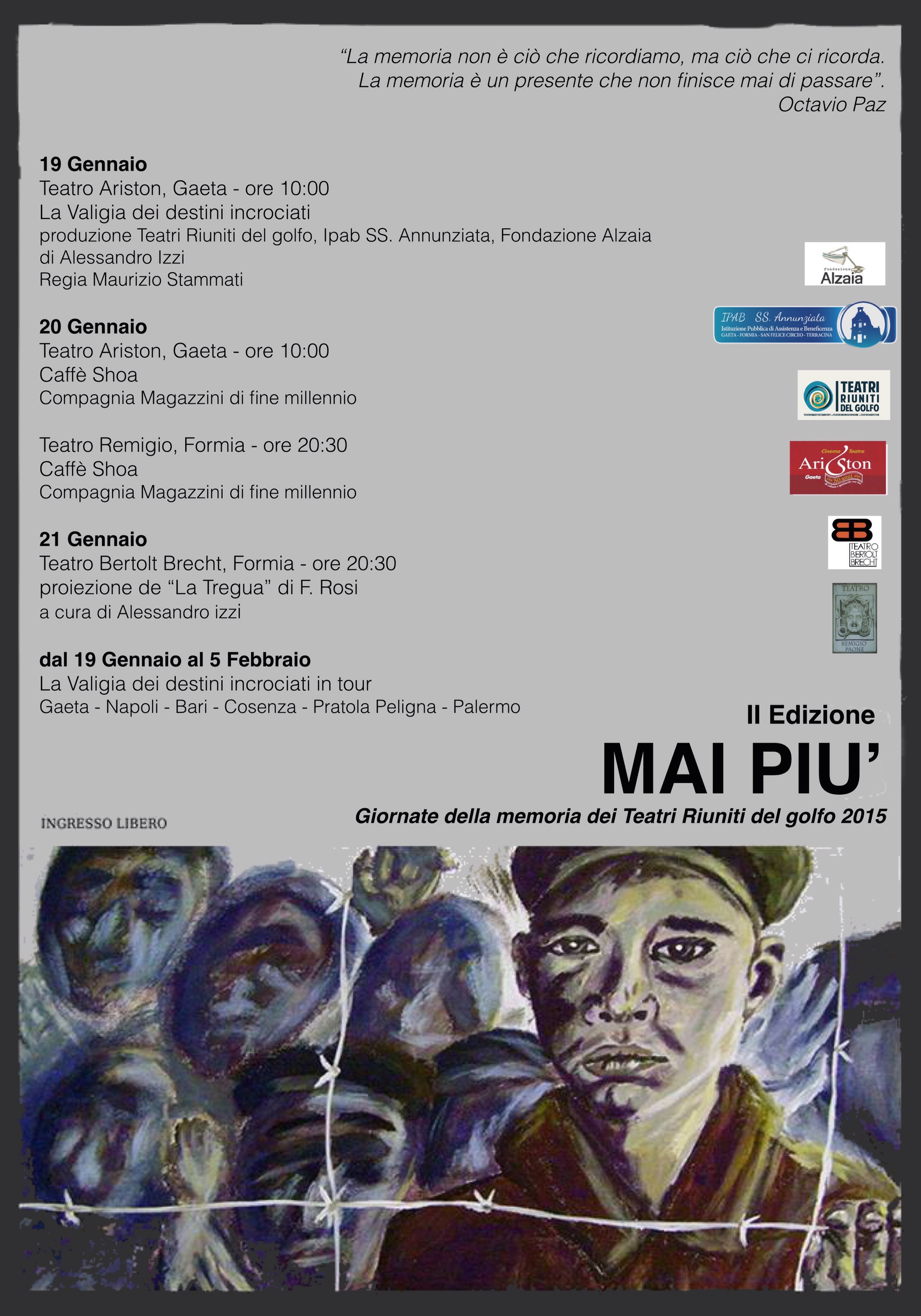 “Mai più”, questo il titolo delle giornate della memoria 2015 dei Teatri Riuniti del golfo