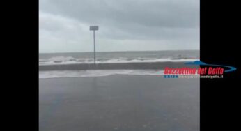Maltempo nel Golfo di Gaeta: forte mareggiata e parcheggio del porticciolo Caposele sommerso dall’acqua.