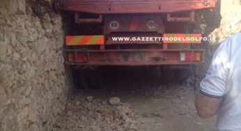 Un mezzo pesante è rimasto letteralmente incastrato in Via del Colle: il veicolo era in transito nella stretta via altezza…
