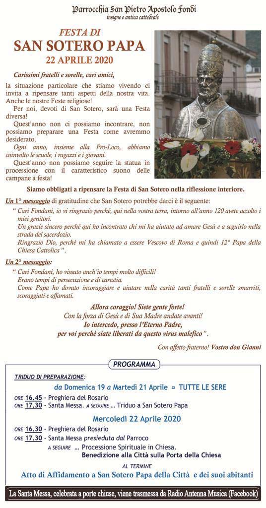 Fondi: Festeggiamenti di San Sotero, Papa fondano