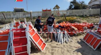 Terracina – Sequestri di lettini, ombrelloni e tavole da surf sul litorale, liberate migliaia di metri di arenile pubblico. Partita…
