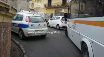 L'auto della Polizia Municipale di Minturno in sosta selvaggia unitamente ad altre vetture. In tilt la circolazione stradale. Traffico paralizzato…