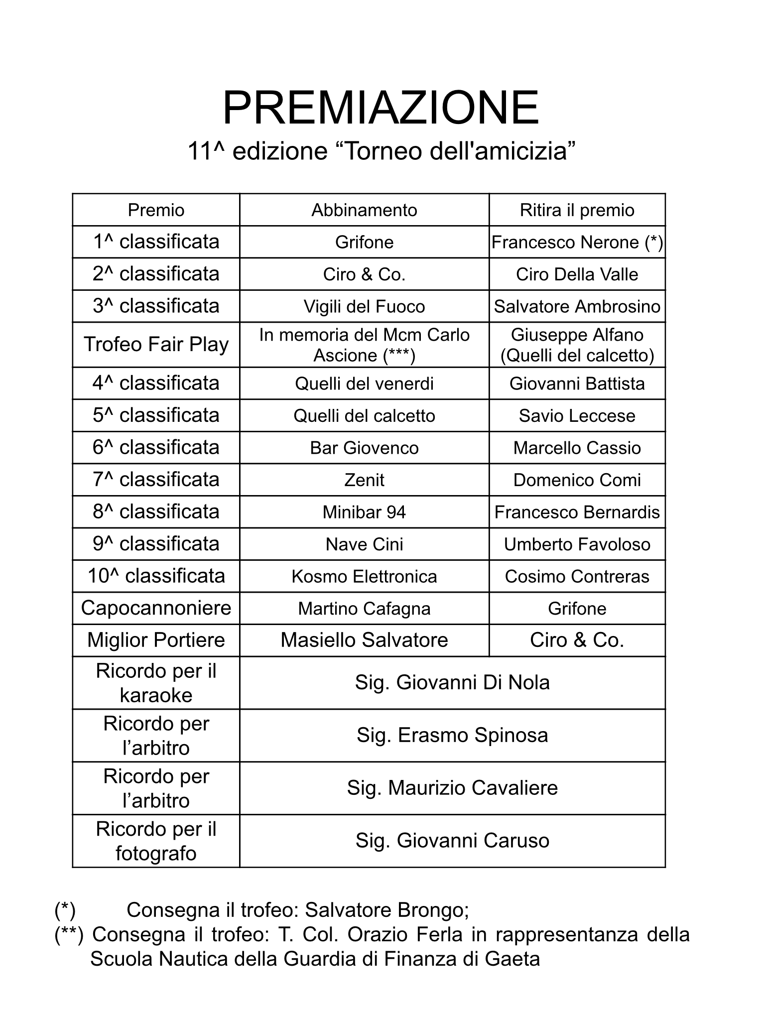 Gaeta, si chiude l’undicesima edizione del torneo dell’amicizia