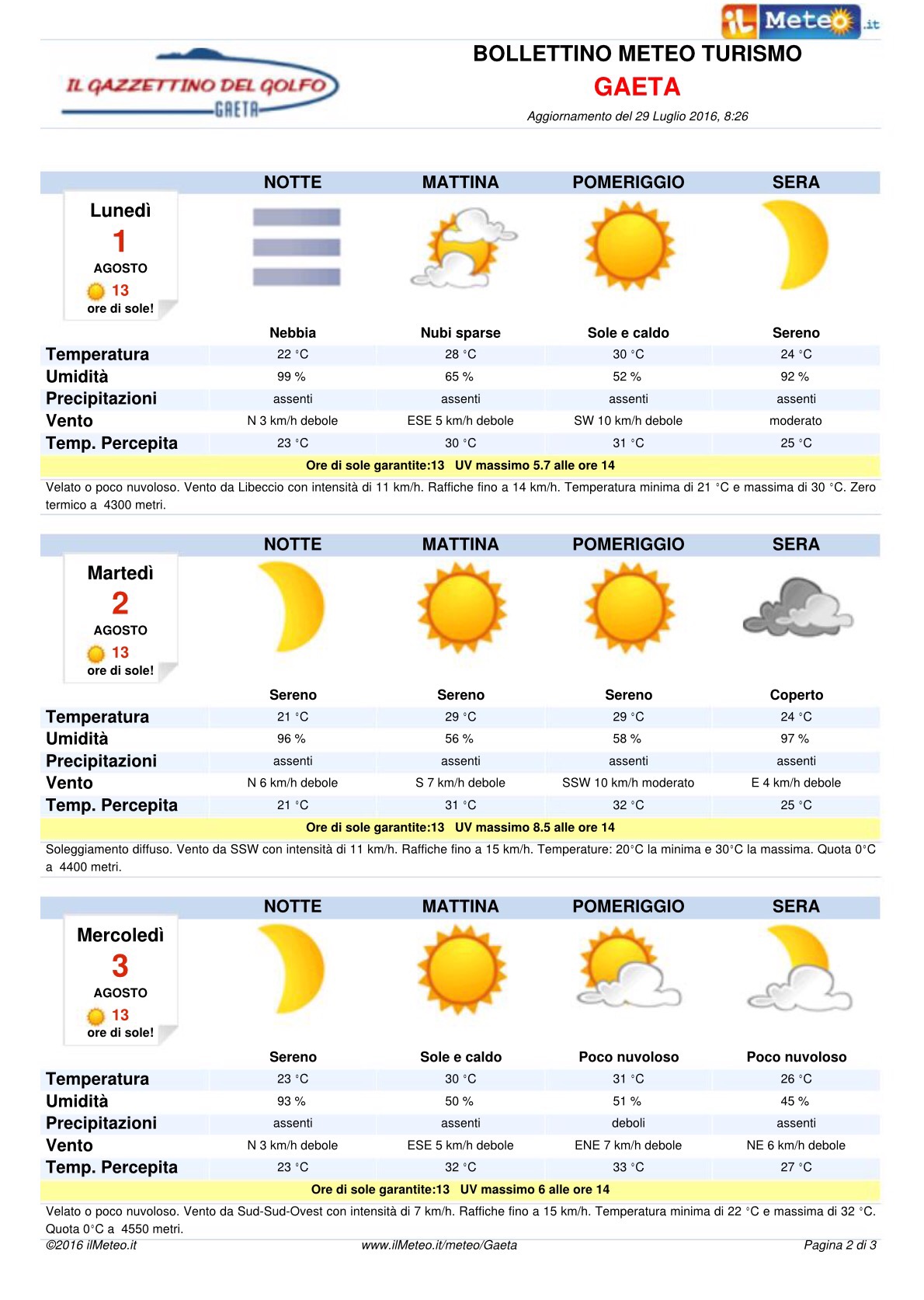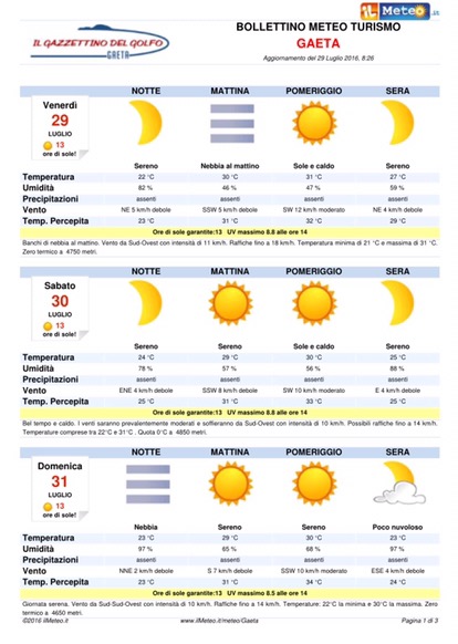 Nelle foto riportate sotto, riportiamo il bollettino meteo dettagliato per il weekend.