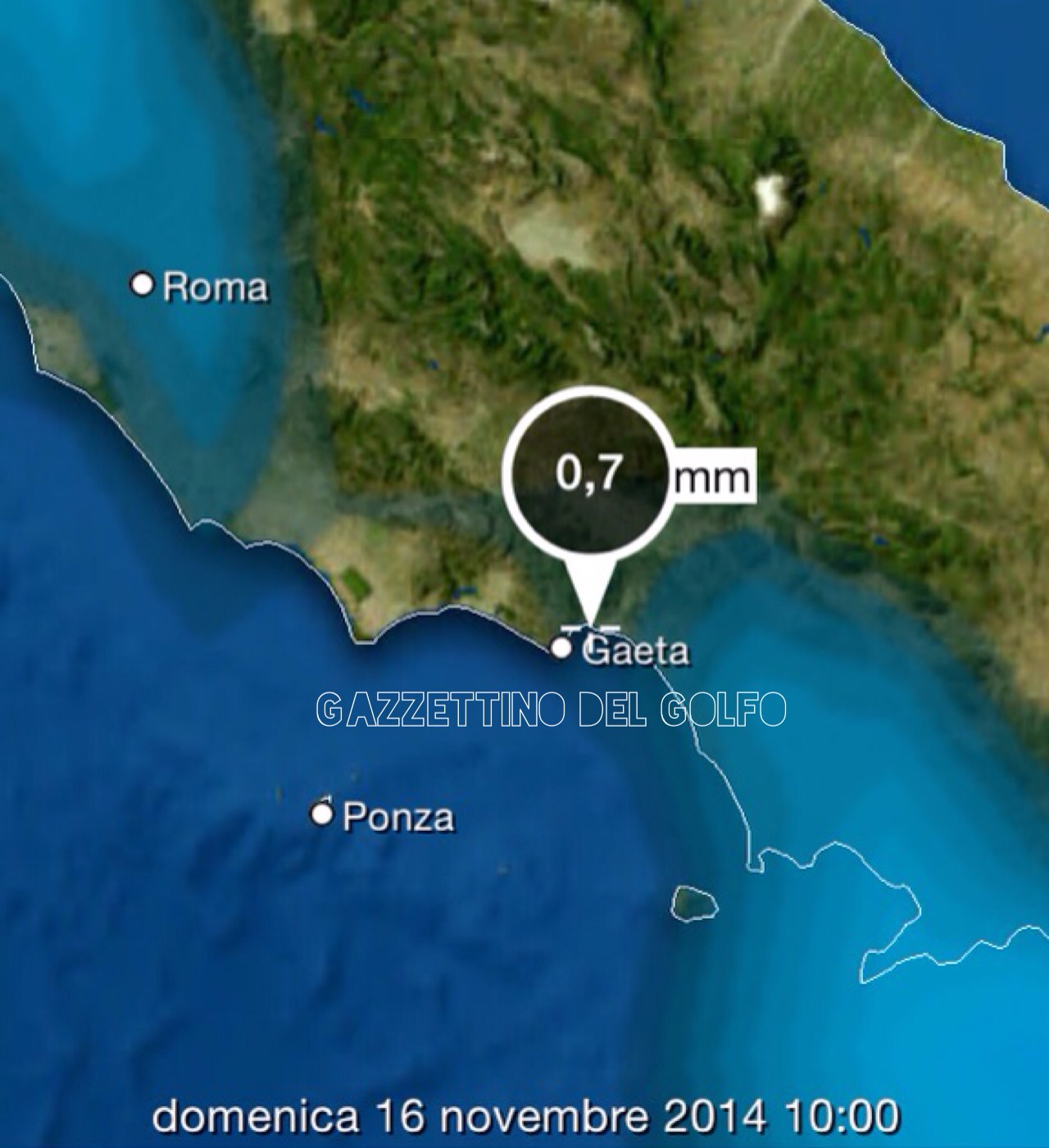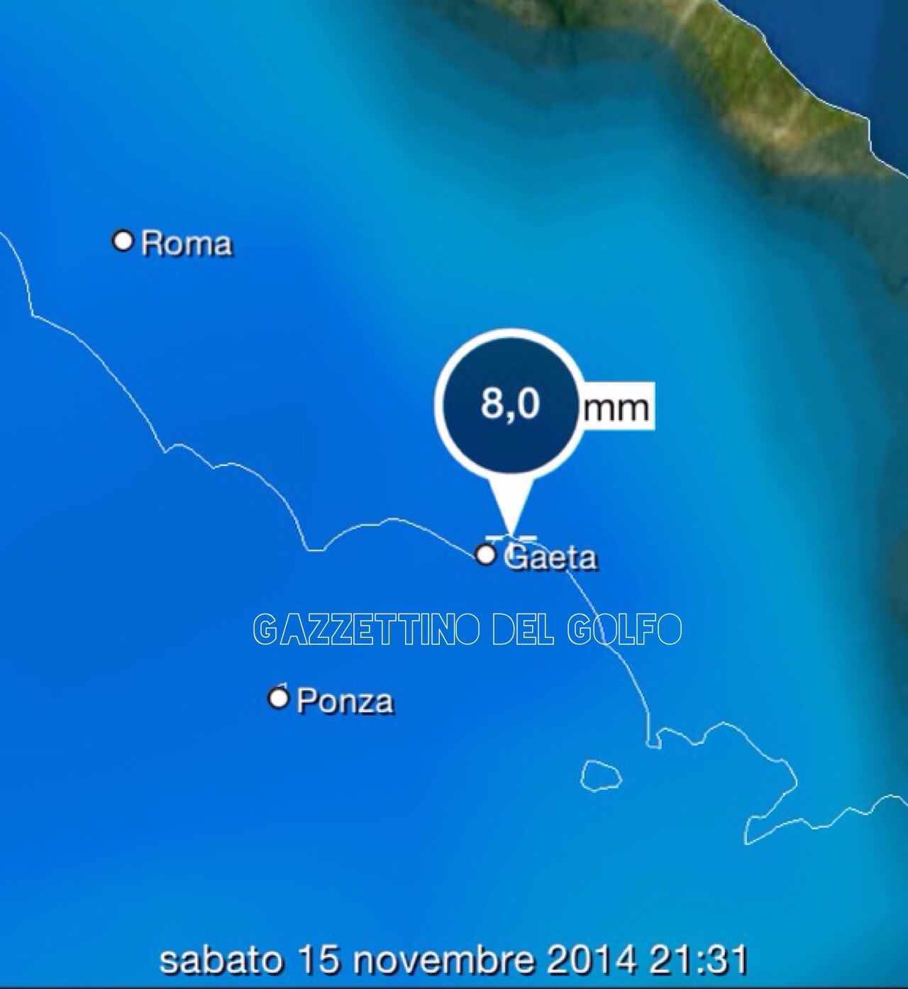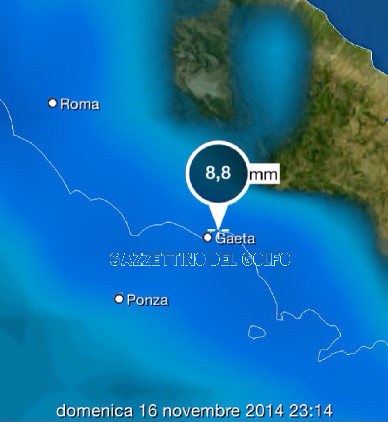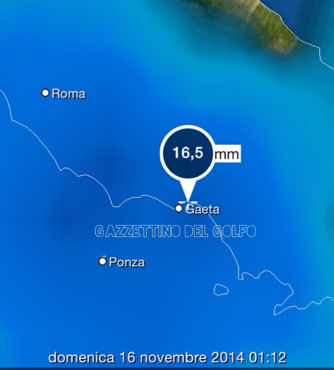 L’acquazzone che sta colpendo il Golfo di Gaeta e le Isole Pontine si intensificherà nelle prossime ore con intensi rovesci di carattere temporalesco; prevista una tregua per la mattina di domani Domenica 16 novembre, poi un nuovo peggioramento nel pomeriggio/sera con aumento delle piogge.