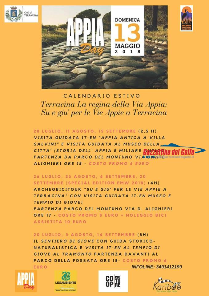 L’evento è patrocinato dal Comune di Terracina, Parco Regionale Monti Ausoni e Lago di Fondi, in collaborazione con Coopculture e Kariboo-Bike Rental Terracina, per la valorizzazione ecoarcheologica dell’Appia a Terracina.