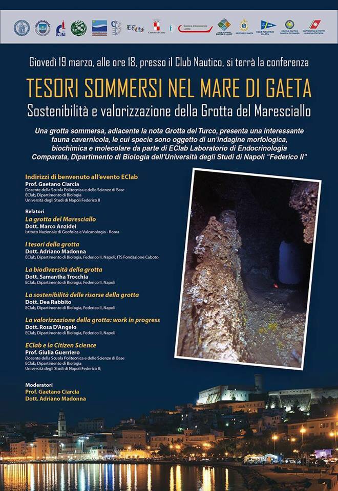 Una grotta sommersa, adiacente la nota Grotta del Turco, presenta una interessante fauna cavernicola, le cui specie sono oggetto di un’indagine morfologica e molecolare da parte di EClab Laboratorio di Endocrinologia Comparata, Dipartimento di Biologia dell’Università degli Studi di Napoli “Federico II”. Lo studio della biodiversità costituisce, oggi, un settore scientifico di grande importanza, in special modo alla luce degli attuali mutamenti ambientali a cui il nostro pianeta è soggetto. Tutto ciò, al fine di una conoscenza più dotta e matura degli equilibri che regolano il mondo della natura e del benessere dell’umanità.