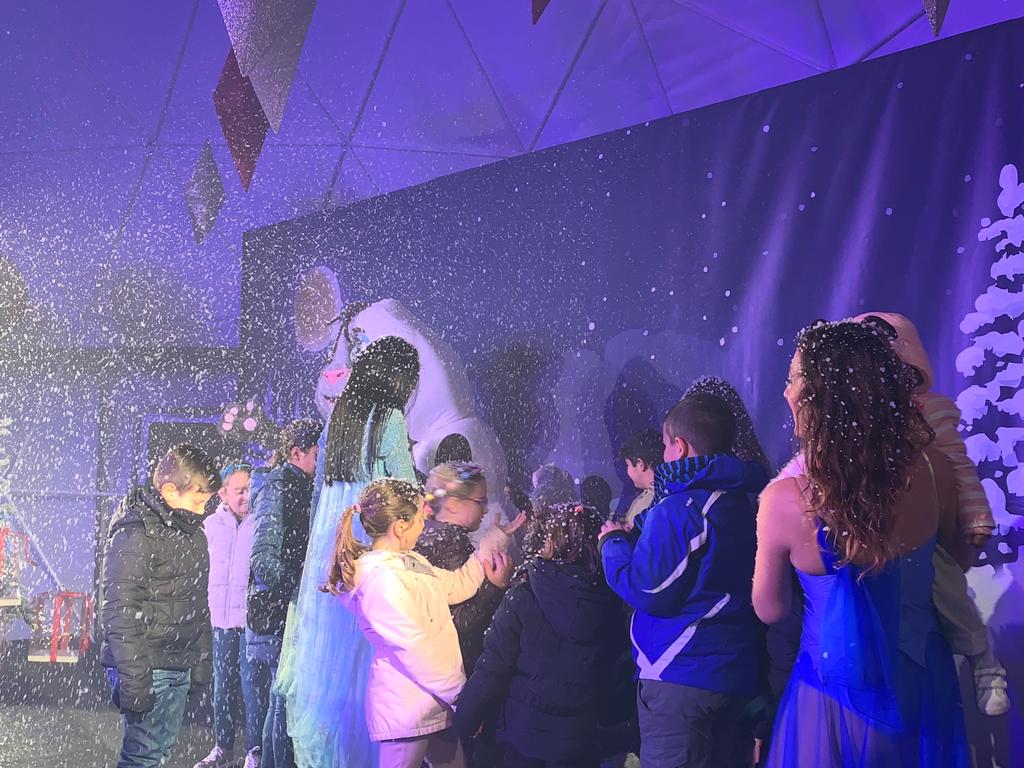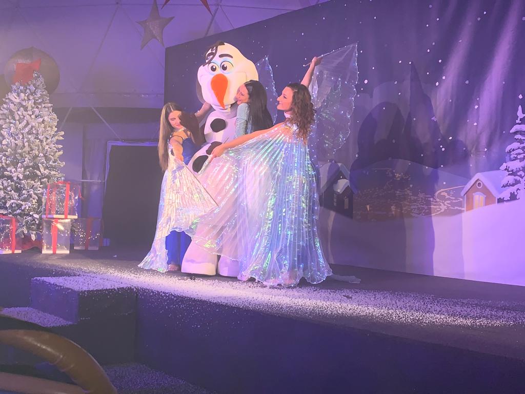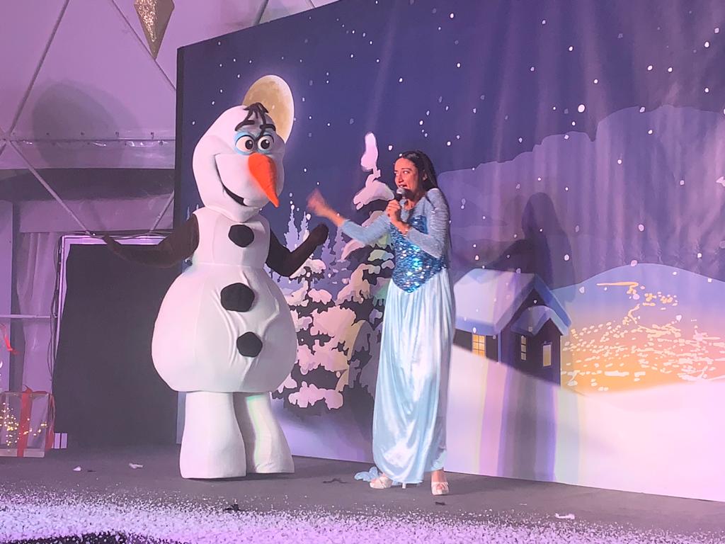 Gran finale nel Regno di Ghiaccio del cartone della Disney Frozen con la Principessa Elsa e Olaf che hanno salutato i piccoli ammiratori sotto una cascata di neve.