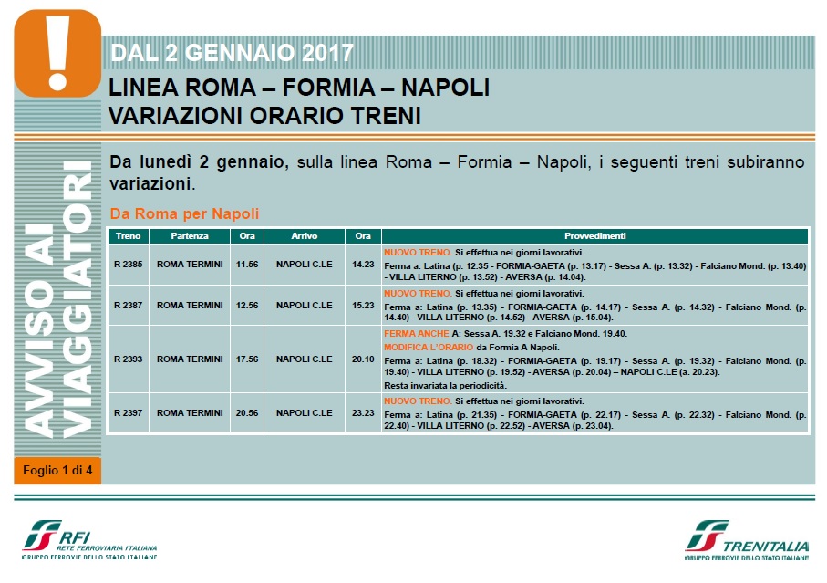 Dal 2 gennaio infatti la linea FL7 (Roma-Formia-Minturno) avrà un maggior numero di collegamenti con un miglioramento della puntualità e del comfort dei viaggiatori. In particolare i treni giornalieri da e per Minturno passano da 20 a 26 senza interscambio a Formia.