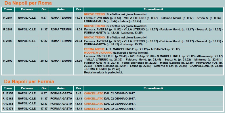 Cliccare sulle immagini per visualizzare i nuovi orari in vigore dal 2 Gennaio 2017