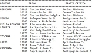 Sono 15 in tutta Italia, i treni dove è più alto il rischio aggressione e che potranno essere soppressi se non verrà garantita la presenza a bordo delle forze dell’ordine