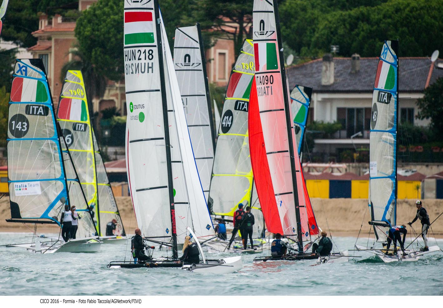 Verso metà pomeriggio, sfruttando un’altra breve finestra meteo favorevole, è poi arrivato il momento delle flotte del catamarano Nacra 17 e dei doppi acrobatici 49er e 49er FX, che sono però riusciti a disputare soltanto una prova a causa della continua instabilità del vento (a seguire tutti i risultati, classe per classe, mentre le classifiche complete sono on line su www.cncaposele.it/it/cico2016).