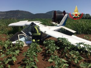 Intervenuti, in seguito a una segnalazione al 115, i Vigili del Fuoco della sede di Terracina che hanno messo in sicurezza il velivolo ed assistito alle operazioni di travaso del carburante, vista la copiosa perdita a seguito del dannegiamento di un’ala.
