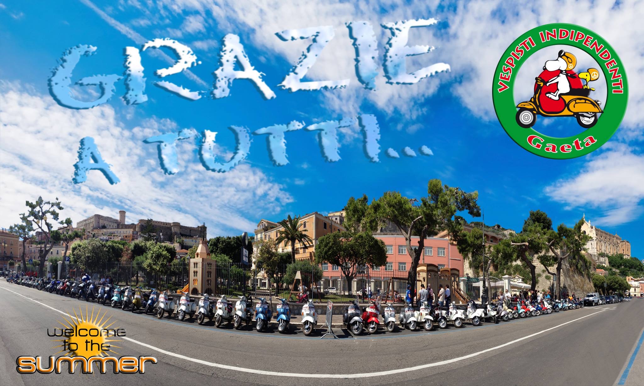 Domenica 19 giugno 2016, il VESPA CLUB GAETA Vespisti Indipendenti, organizza il vespa-raduno “Welcome to the Summer”, con il patrocinio del Comune di Gaeta e dell’ente Parco Regionale Riviera di Ulisse, e l’egida della federazione nazionale Vespa Club Italia.