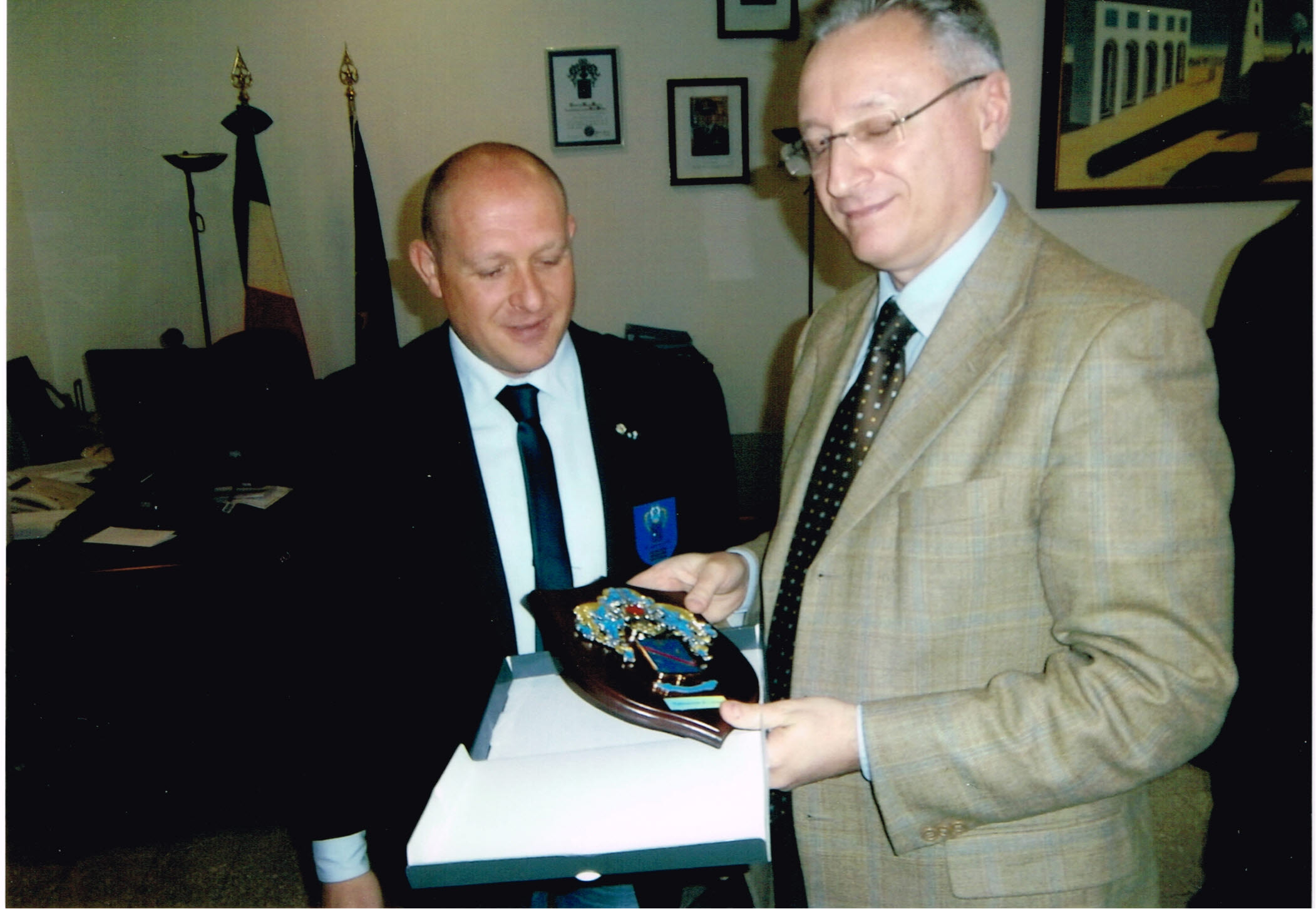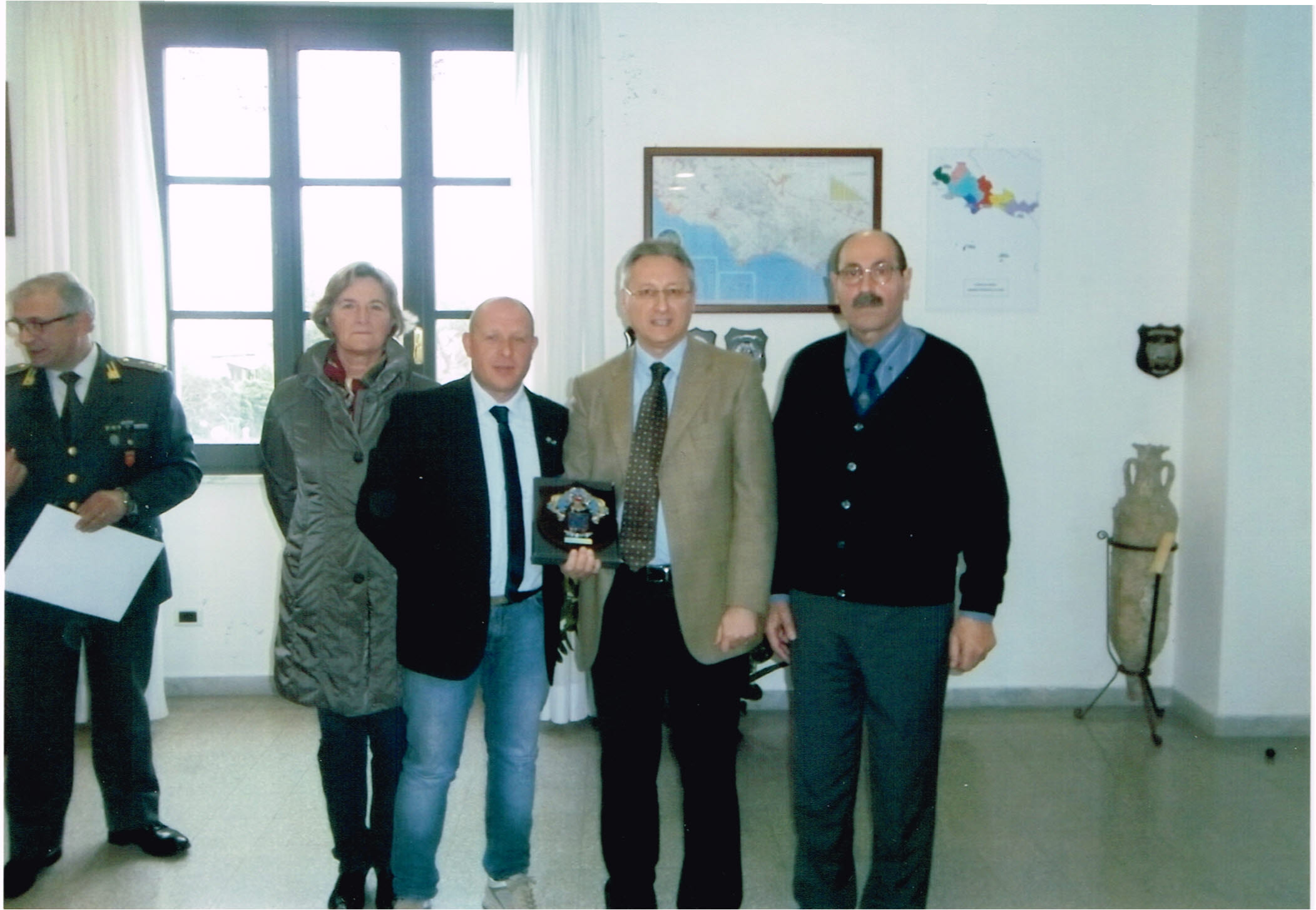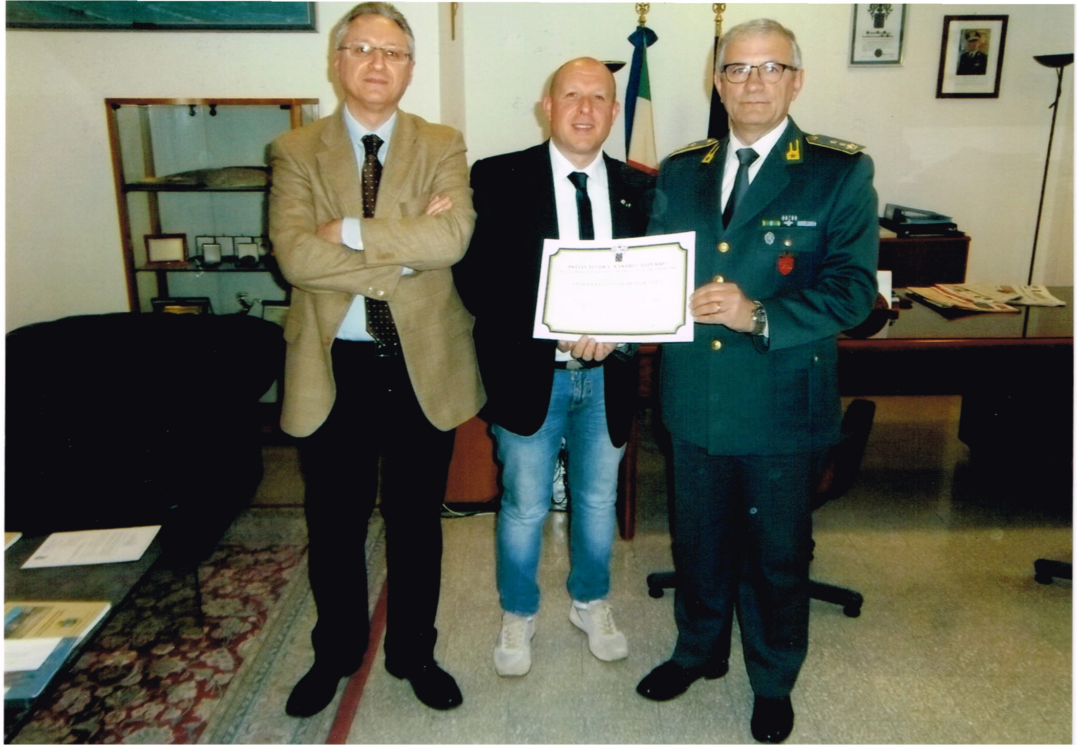La delegazione del Nastro Azzurro, guidata dal Presidente Stefano Millozza, dai soci Silvia Zagni – S.Ten. CRI e dal Cav. Sante Cerroni – Presidente ANVCG, ha consegnato nelle mani del Comandante il Crest del nostro Istituto, in segno di stretto e proficuo rapporto tra i due Enti.