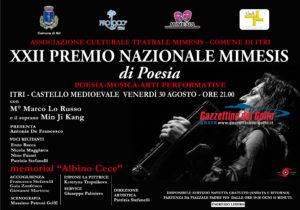 Dice il presidente dell’associazione Mimesis Nicola Maggiarra: “Dopo il memorial al compianto artista itrano Vito La Rocca, quest’anno il Premio ricorda Albino Cece, giornalista e storico vissuto a Itri, persona di grande cultura e saggezza. Ad Albino Cece è intitolato il premio attribuito al poeta Carmelo Salvaggio, vincitore della provincia di Latina. Grazie alla collaborazione del Comune di Itri, degli sponsor e dei tanti amici giornalisti e degli operatori culturali, il Premio Mimesis cresce in Bellezza.”